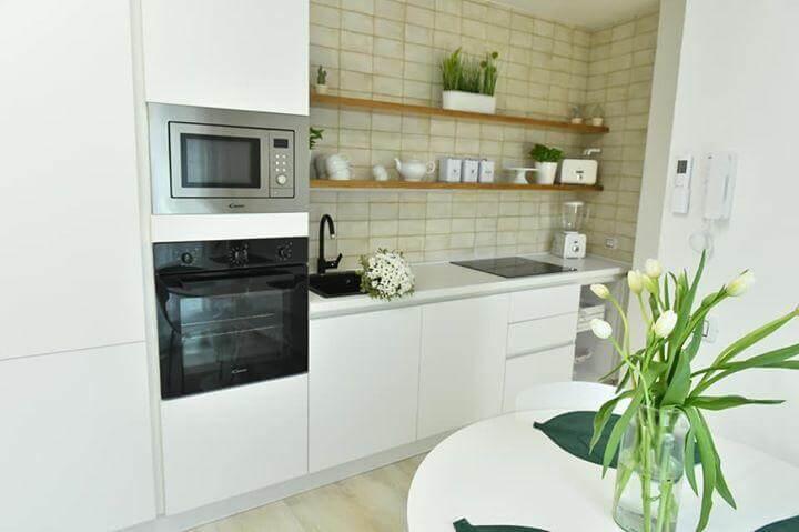 La légèreté chromatique, avec une saveur artisanale, est bien placée à côté des tons frais et décisifs du badigeon des murs et des plafonds et de la chaleur du bois des sols.