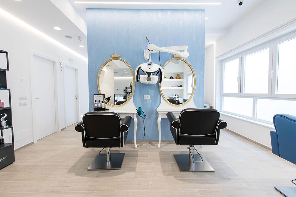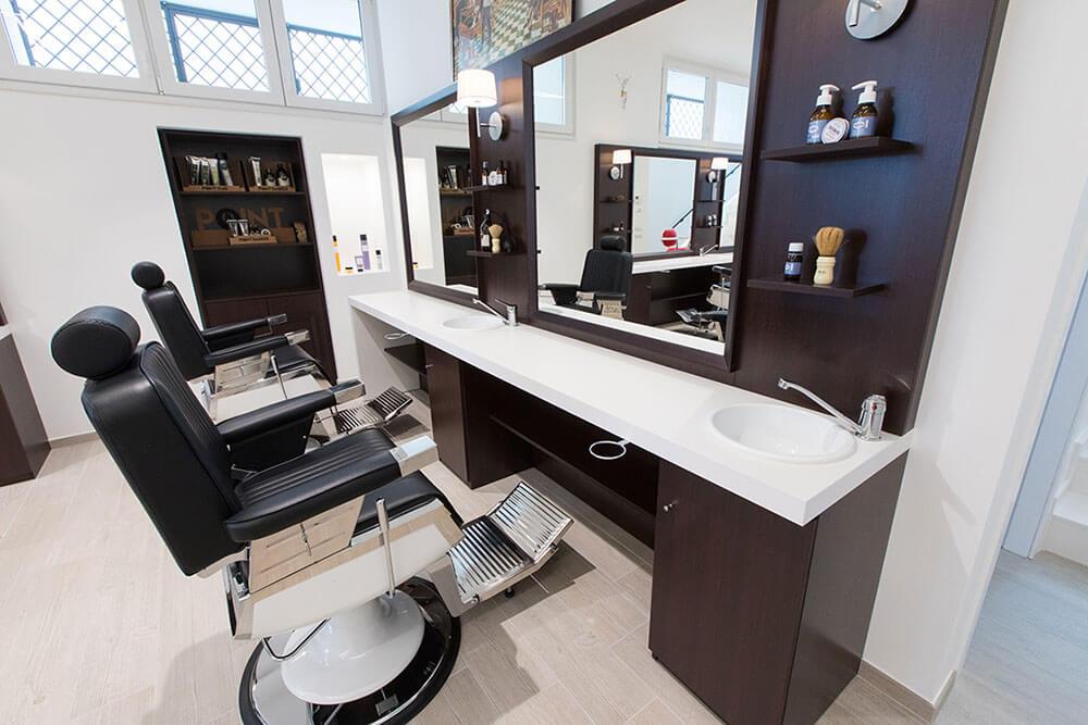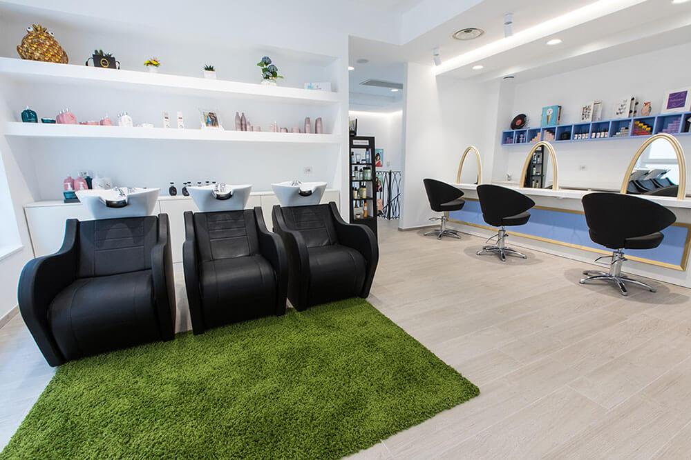 Les couleurs des murs et du carrelage, en plus d'épouser le mobilier minimaliste, sont associées à celles des chaises de travail. L'objectif est de garantir au client une expérience relaxante également d'un point de vue visuel. Les céramiques ont été utilisées pour garantir une hygiène maximale.
