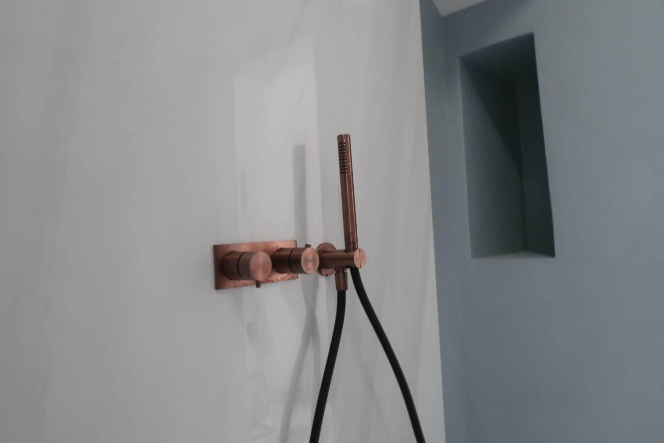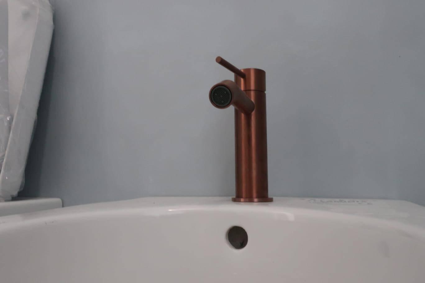Fourniture : Robinets Gessi 316 en finition cuivre brossé, appareils sanitaires Flaminia App