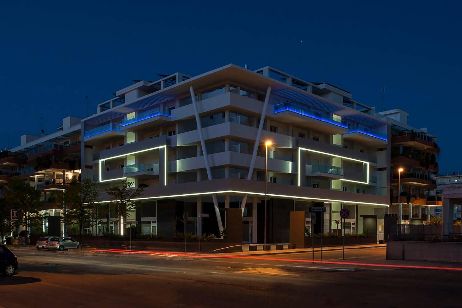 L'architecture présente des formes harmonieuses, contemporaines et fonctionnelles composées d'un mouvement vertical donné par un système de "rubans" qui part du rez-de-chaussée et parcourt tout le bâtiment horizontalement et verticalement. La conception des éléments des "rubans" a été étudiée de manière à avoir un mouvement de perspective tel qu'il soit différent quel que soit l'angle sous lequel on observe le bâtiment.